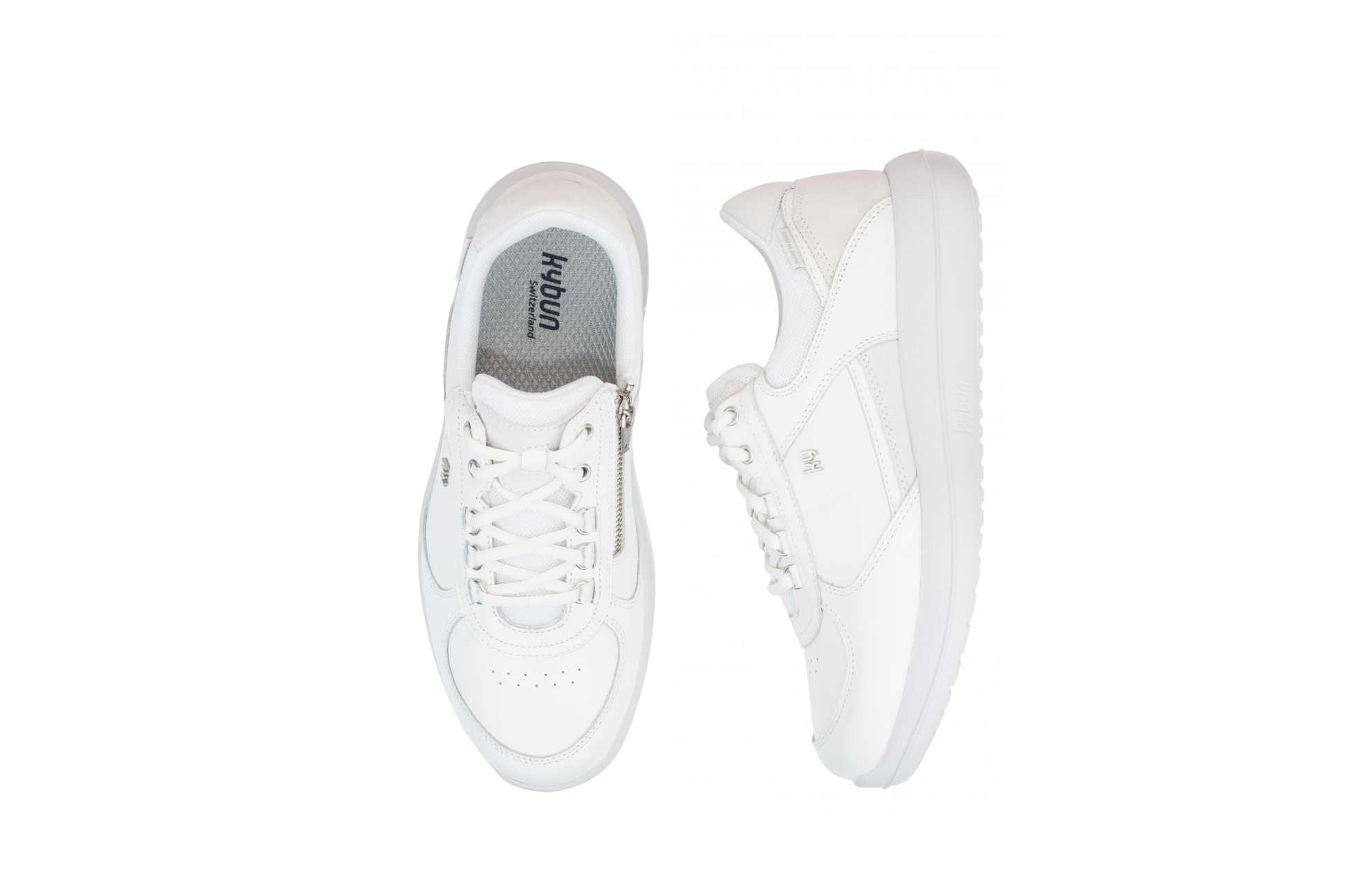 The Rolle white has a Tropo sole and therefore a lower Rebound-Effect. This sole has an improved profile for squeaky floors and a «kybun light» feeling with less initial reactions. The Tropo sole is the successor of the popular Cirrus sole and has all the advantages of the previous models. It is designed to roll better in the backfoot area than the Cirrus sole. Furthermore, it has an ideal fit for almost every foot. This type of sole offers a slightly reduced intensity and effect. With its «kybun-light» feeling, it is ideal for people with weaknesses in the muscular system or balance disorders. Also for all exercise fanatics, who don't want to miss the kybun shoes during sports activities. Perfect for sports such as tennis, volleyball, jogging, etc., where it is less about the winning and more about pain-free movement. The sole has no air cylinder due to the lower height. The Tropo sole also has the optimal kybun grip on all floors.