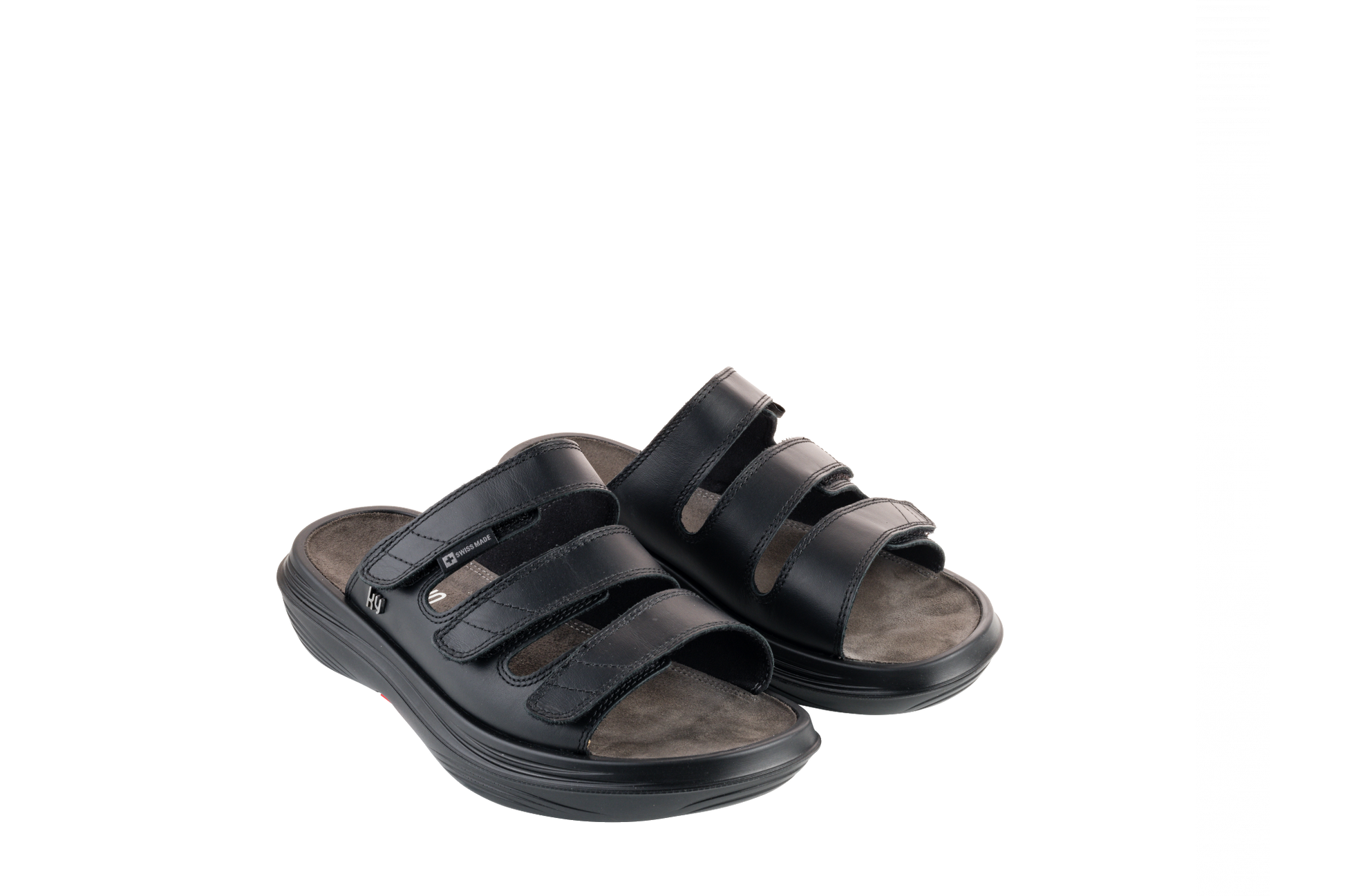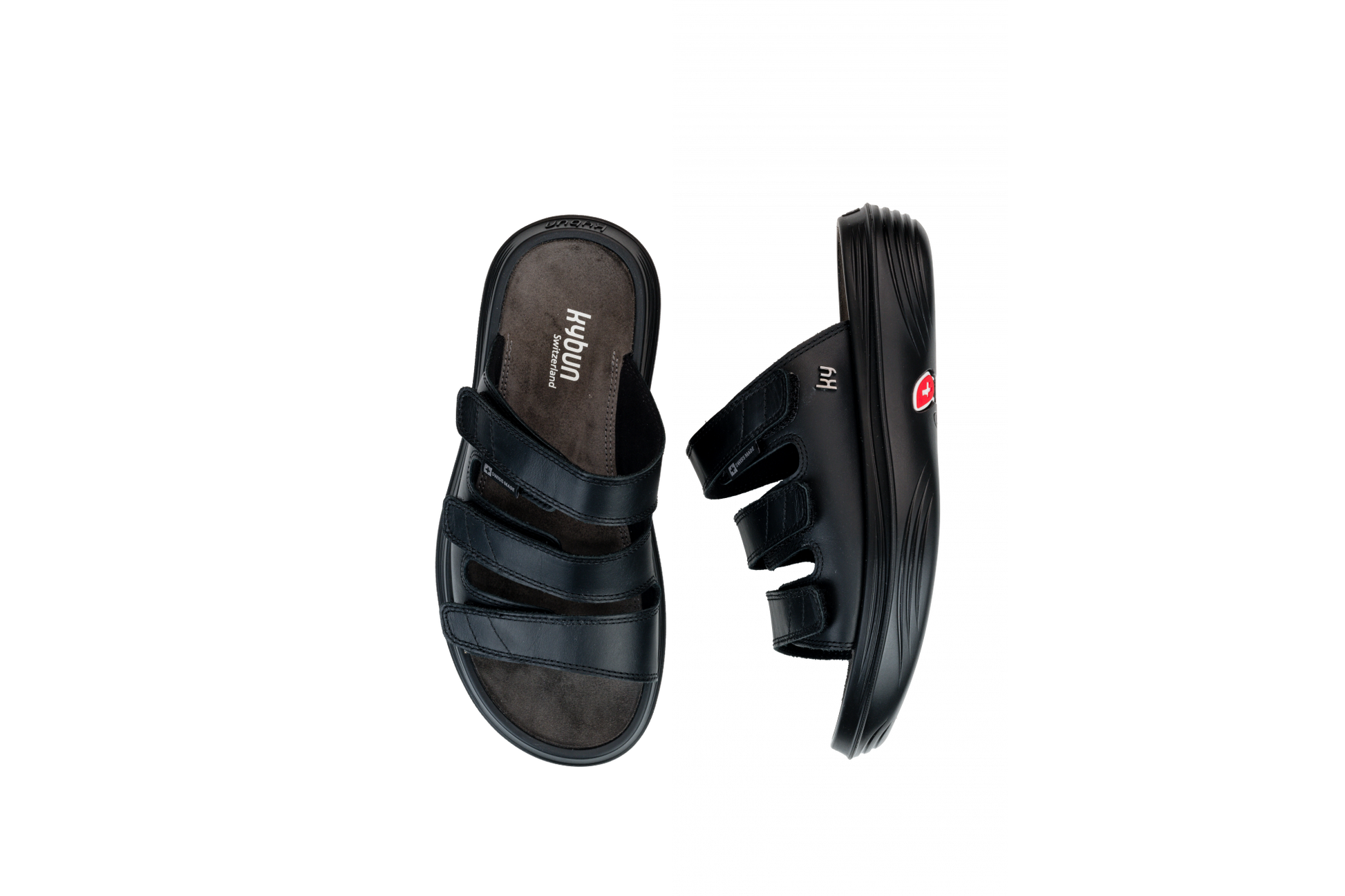 The Kriens black is an elegant sandal made of smooth full-grain leather. Three Velcro fasteners over the instep allow for individual adjustment and ensure a comfortable fit. Versatile for wear – indoors and outdoors, in leisure and everyday life.