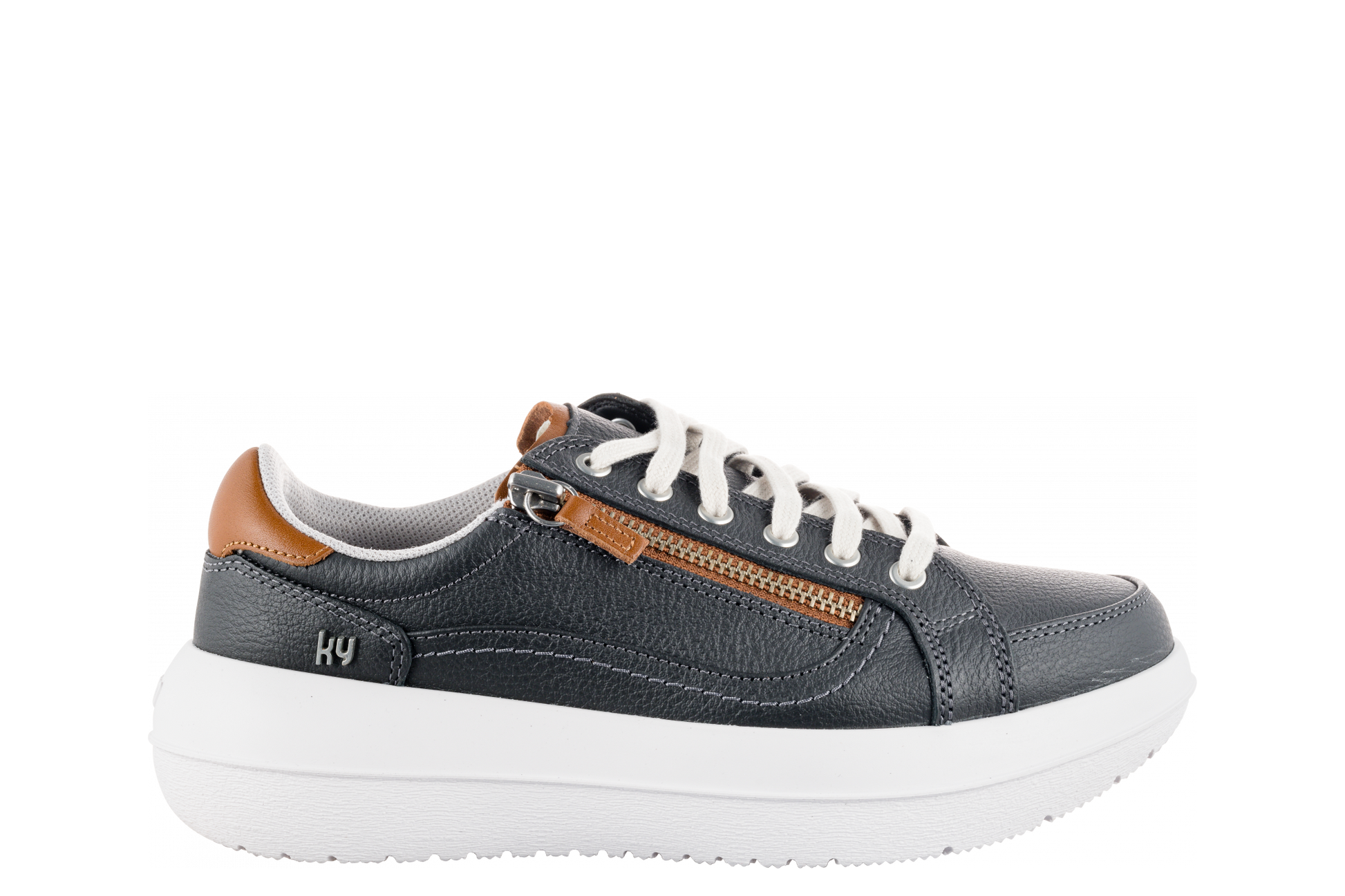 The Carouge graphite has a Strato sole and therefore a higher Rebound-Effect. The Strato sole is designed to roll better in the backfoot area than previous kybun soles. This type of sole offers maximum effect as well as the ultimate in training performance and absorption. The foot pressure is evenly distributed and the full strength of the body is optimised. The elastic and springy material compensates poor postures and misalignments by stretching the posterior muscle chain with each step and the full-length sole profile with larger contact area to the ground ensures optimal grip on any surface.